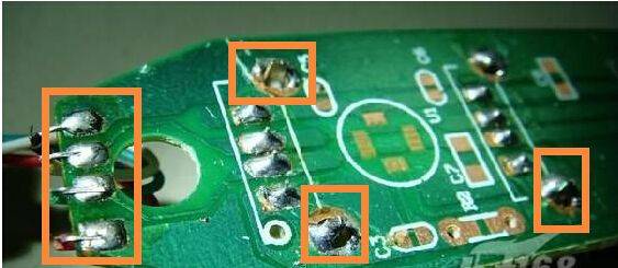 6、焊接点凝固的过程中,切记不要用手触碰焊接点。焊接点在未完全凝固前,即使有很小的振动也会使焊点变形,引起虚焊。因此,在烙铁头撤离之前对焊接件要予以固定,如用镊子夹持,或烙铁头撤离之后快速用嘴吹气,采取这些做法的目的,就是缩短焊点凝固的时间。