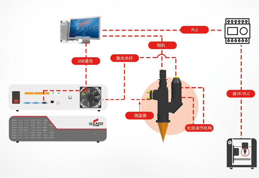 - 激光加工恒温控制 :对激光加工点温度实时监控,内部闭环反馈,焊接稳定性好,适应性强;