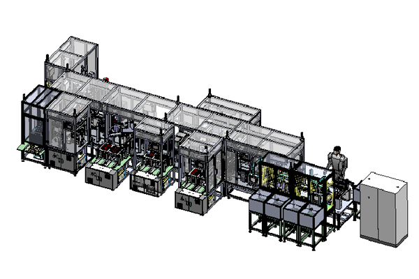 本条产线只有一人上下料,其余全部为自动装配工序,并集成在线式激光焊、噪音测试、功能测试、热铆等多种工艺要求,在装配过程中,实现多个齿轮配合式装配。